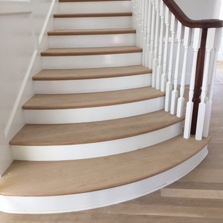 Builders like to keep it simple, added Tokarz, “But with HG TV and HOUZZ, we find the homeowners and designers are more aware of what they can really do to dress up the interior of their home. We are seeing them change up the stairways by adding Iron or other decorative balusters and stair treads to match their hardwood flooring.”