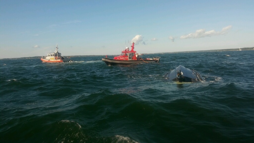 Petter Officer Nicole Groll said a good Samaritan called watchstanders at Coast Guard Sector Southeastern New England just after 4:30 reporting that the 18-foot sail boat overturned.