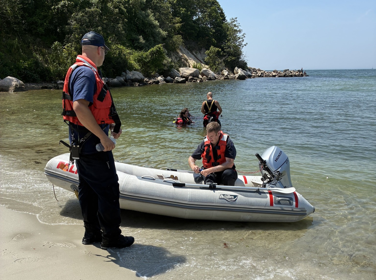 The Incident Commander requested mutual aid assistance, which prompted a response of fire department divers from the Mid and Upper Cape, the Barnstable County Sheriff’s Drone Unit, the Massachusetts State Police airwing, Falmouth Marine Environmental Services, the USCG, the Environmental Police, along with Falmouth Police and Falmouth Fire Rescue personnel and Marine Boats. A coordinated search was conducted off the public side of Old Silver Beach based on witness accounts. A search from the water and air ensued, and by 2:30 pm, it was determined that this was a good intent call and deemed unfounded. The search was suspended, and all units were placed back in service at that time.