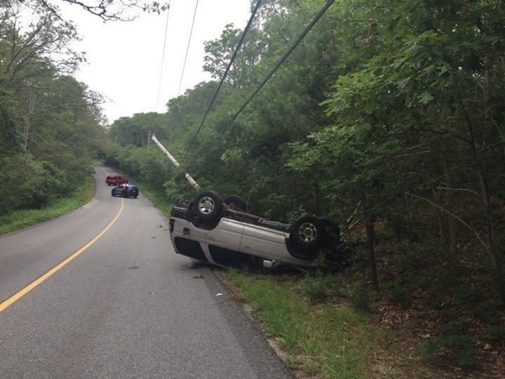 The crash remains under investigation by the Falmouth Police Department. However, the preliminary investigation indicates that the 2000 Toyota 4-Runner was traveling easterly on Ter Heun Dr. when the operator overdosed after using heroin. He lost consciousness and the vehicle traveled over the center line, across the westbound lane, struck the telephone pole then rolled over. The driver was a male in his 40s from the lower cape area.