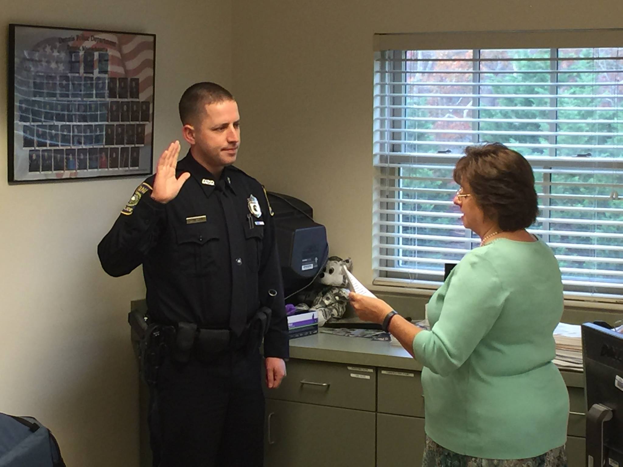 DENNIS – Chief Peter DiMatteo announced that Nicholas Patsavos was sworn in Tuesday as a Sergeant with the Dennis Police Department. Sergeant Patsavos began his career at the Dennis Police Department as a Special Police Officer in 1995. He became a full-time dispatcher in 1999 and was appointed as a patrolman in 2001. Sergeant Patsavos was formally one of two Community Service Unit officers, a Field Training Officer, and a bike patrol officer. Sgt Patsavos holds a Bachelor’s Degree with a double major in Criminal Justice and Sociology. Sgt Patsavos has received many department commendations over the years including three Excellent Police Duty Awards, two Dennis PD Lifesaving Awards and the George Hannah Award for saving a drowning victim in 2005. Sgt Patsavos attended the 2-week basic Supervisor School at Roger Williams University this past September.