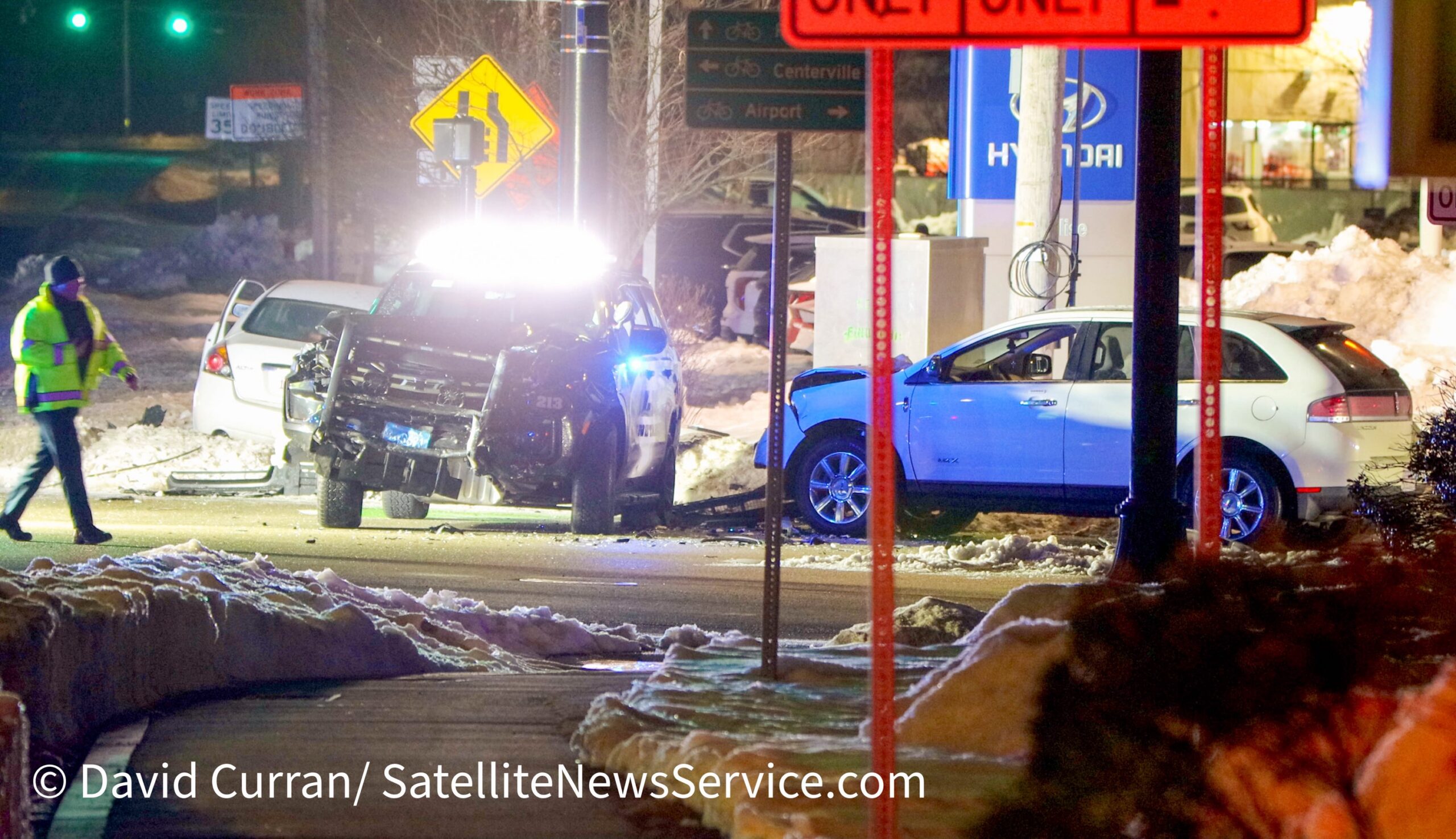 From Barnstable Police: On Friday February 27th at approximately 10:40 PM, there was a motor vehicle crash involving three vehicles at the intersection of Falmouth Road (Route 28) and Bearses Way in Hyannis. One of the vehicles involved was a Barnstable Police Cruiser. Hyannis Fire and Rescue responded to the scene and reported two patient refusals and transported three people to Cape Cod Hospital. Cape Cod Hospital was briefly placed on a trauma alert as a result of the accident. The motor vehicle crash is being investigated by members of the Cape Cod Regional Law Enforcement Council Crash Reconstruction Team.