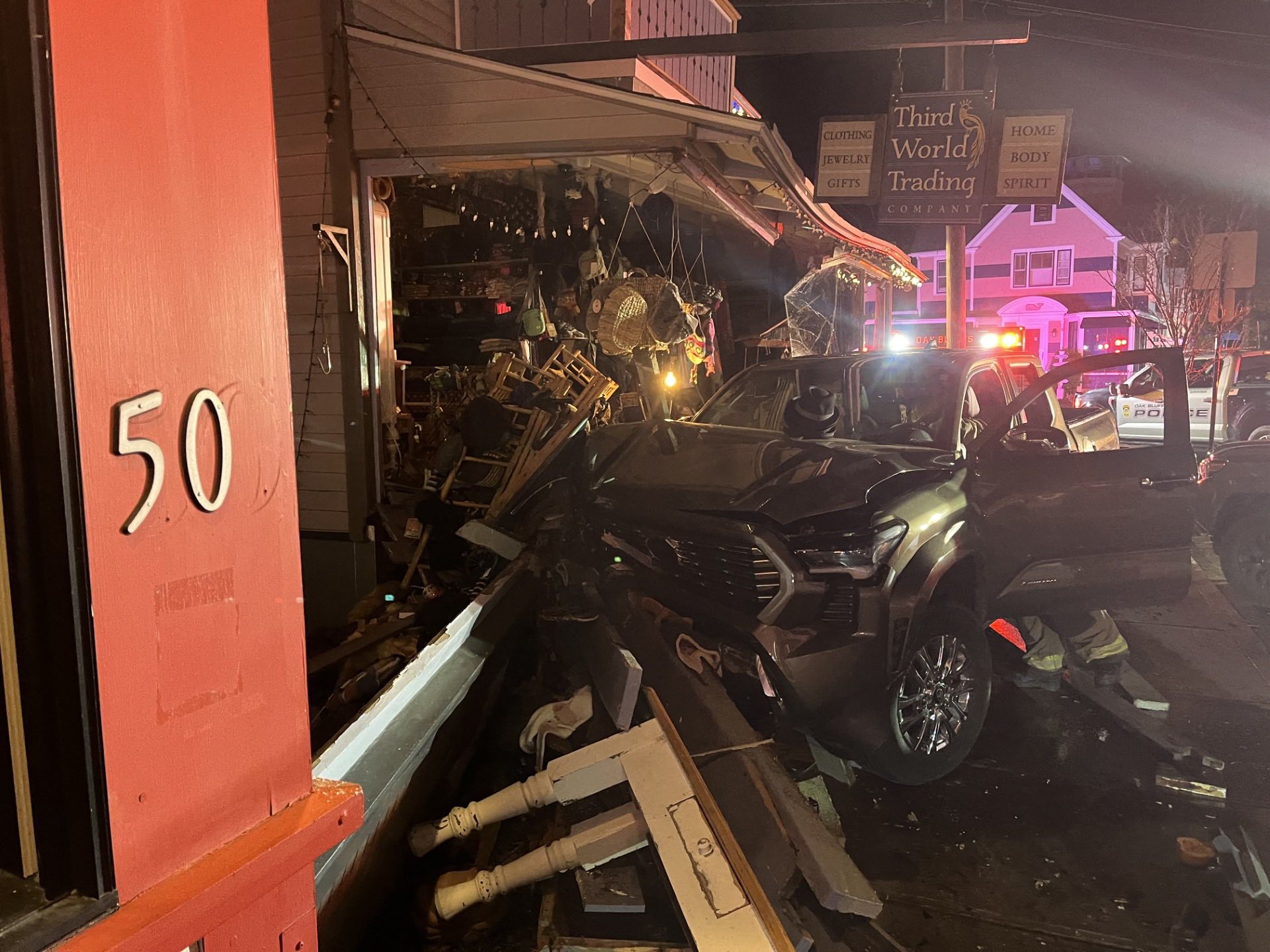 OAK BLUFFS – From Oak Bluffs Police: On Saturday, November 22, 2025, at 7:19 PM, the Oak Bluffs Police Department and Oak Bluffs Fire-EMS personnel responded to #52 Circuit Avenue (Third World Trading Co) for a motor vehicle that drove into the building.