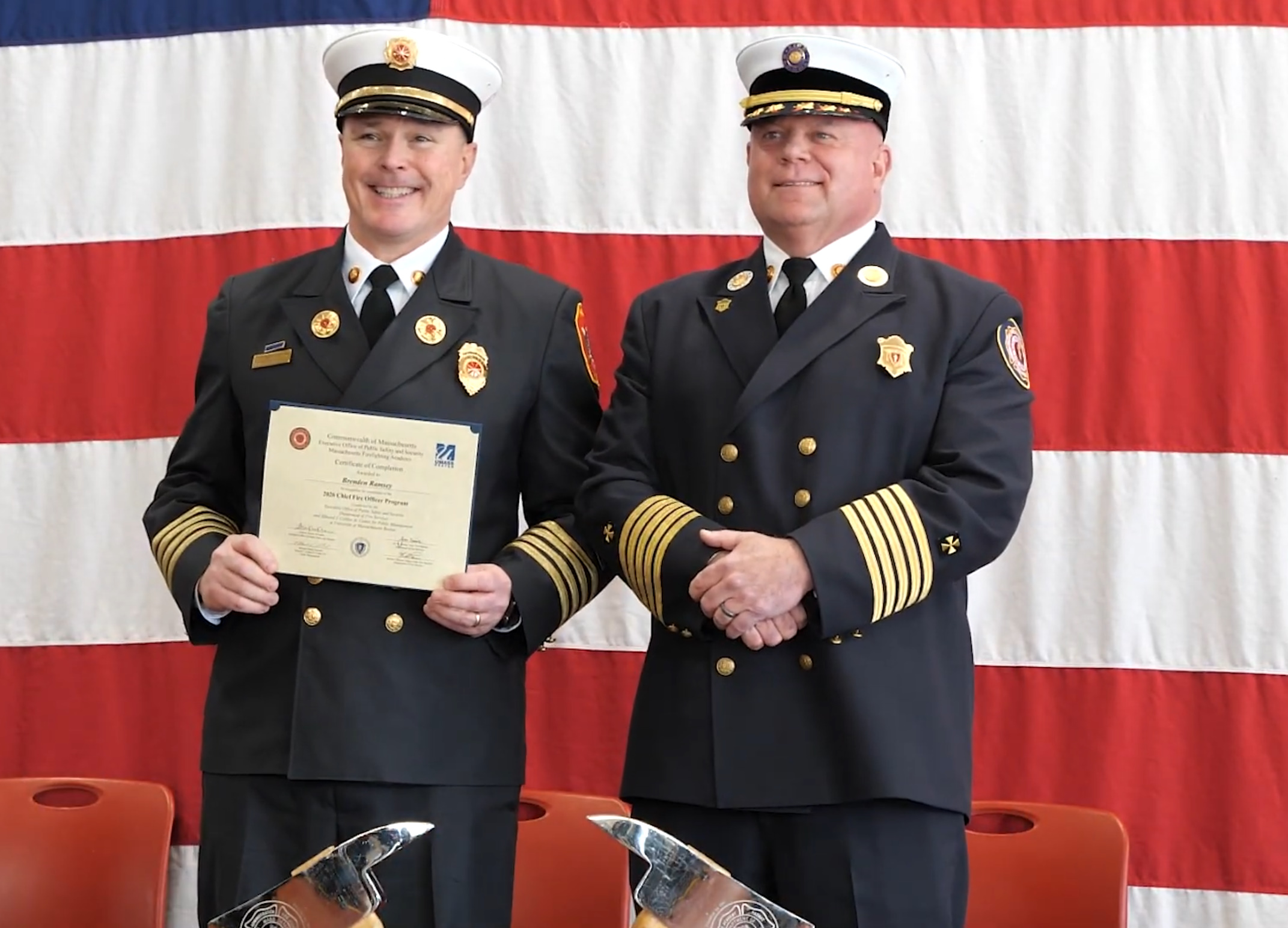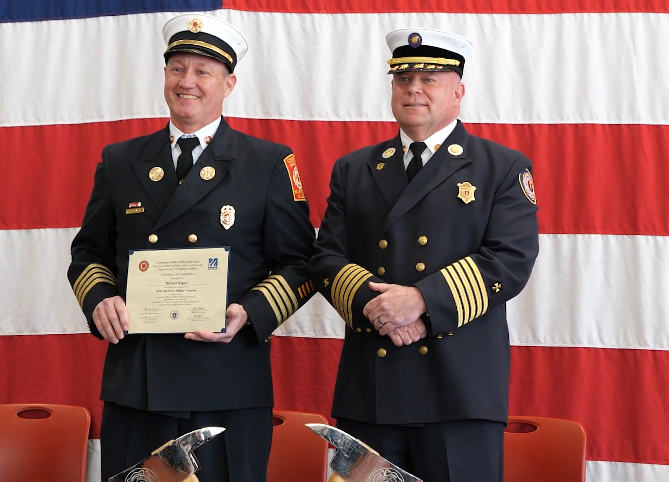 STOW, MA – Dozens of fire service leaders from across Massachusetts graduated today from the 31st class of the Massachusetts Firefighting Academy’s Chief Fire Officer Management Training Program, State Fire Marshal Jon M. Davine said.