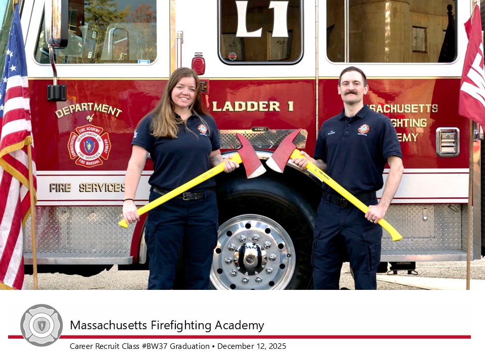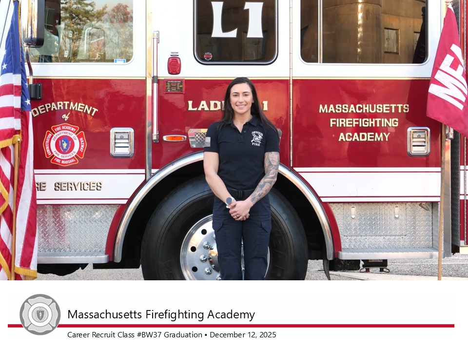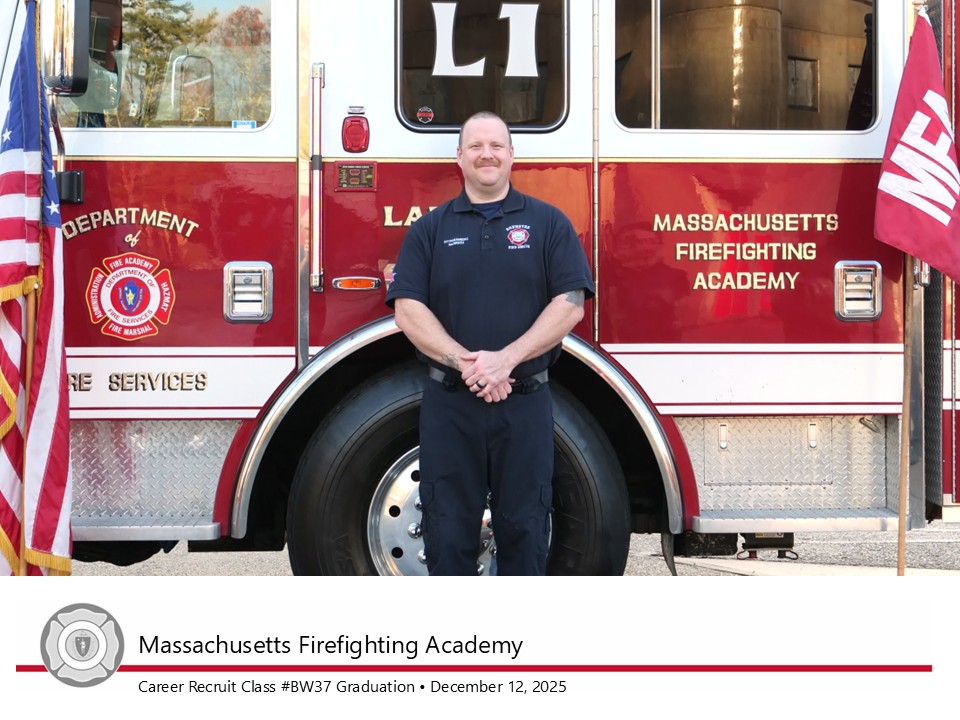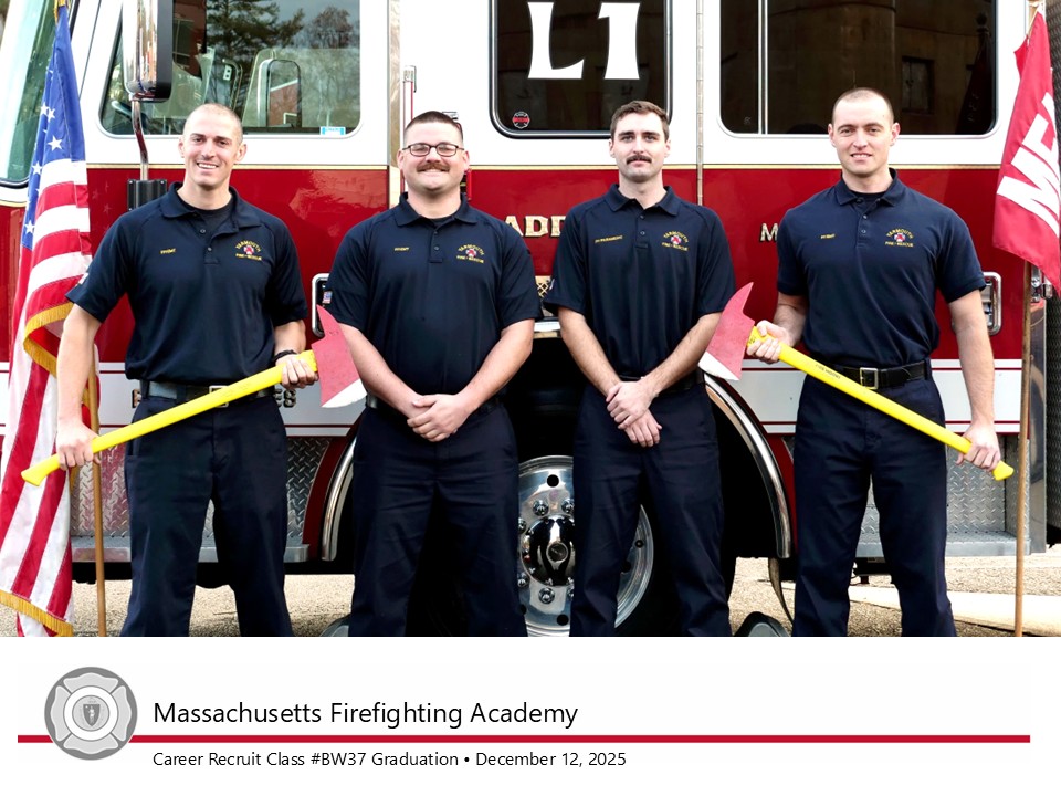 “Massachusetts Firefighting Academy instructors draw on decades of experience in the fire service to train new recruits,” said Deputy State Fire Marshal Maribel Fournier. “Through consistent classroom instruction and practical exercises, today’s graduates have developed the tools they’ll need to work seamlessly with veteran firefighters in their home departments and in neighboring communities as mutual aid.”