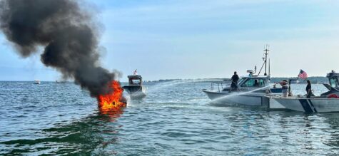 BUZZARDS BAY – A report of a fully involved boat fire caused an activation of the Buzzards Bay Marine Task Force. Fire boats from Mattapoisett, Marion, Wareham and Onset rushed to the scene along with the U.S. Coast Guard. According to reports, at least two people were onboard. They were brought to shore in Marion to be evaluated but it did not appear there were any injuries other than possible hypothermia.