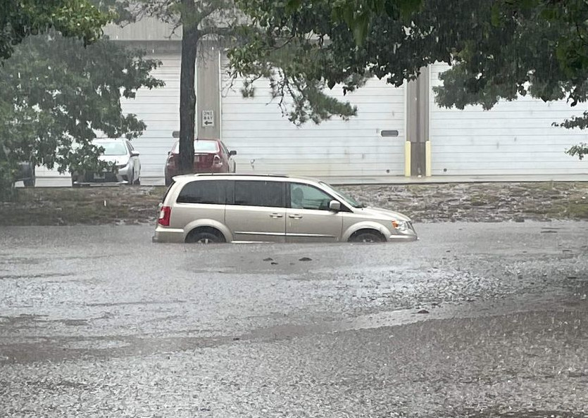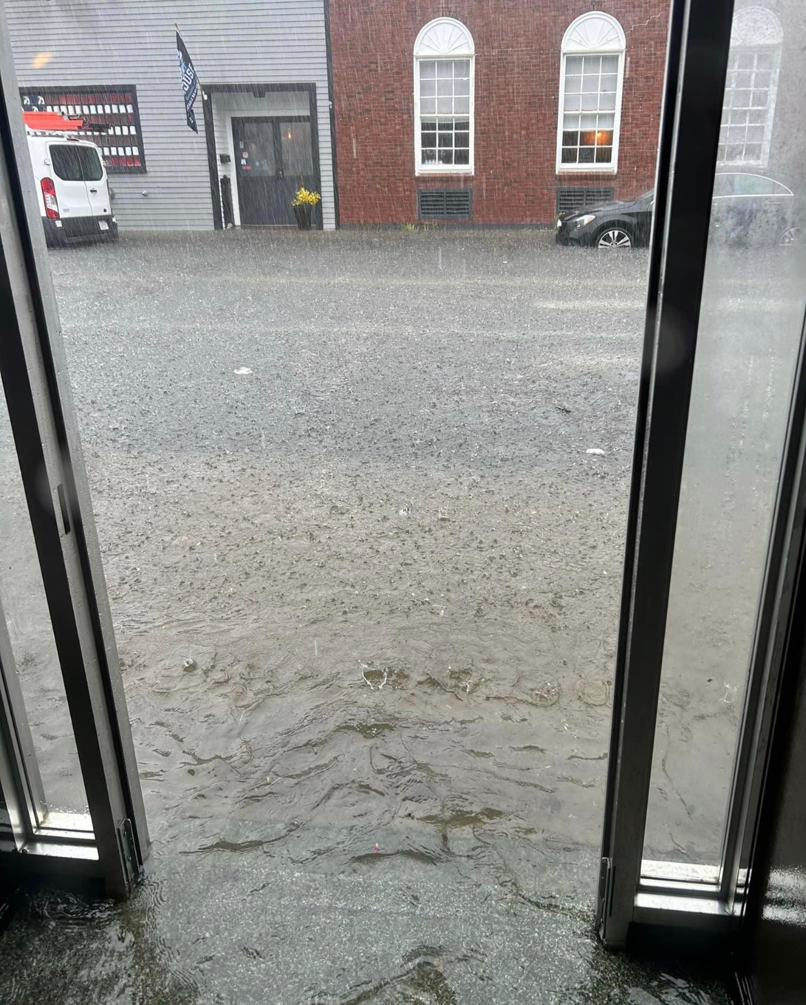 CAPE COD – Emergency officials were responding to numerous calls for help after severe storms crossed Cape Cod late Tuesday morning. Tornado warnings were issued in some areas but no confirmed touchdowns have been reported. Flooding from torrential rain appears to be the biggest problem. A number of reports of flooded basements have been reported and many roads are impassible due to flooding. “Turn around don’t drown”. Numerous lightning strikes were also reported across the region. Weather may have been a factor in a fire that damaged the roof of the Safelite Glass building at 420 Main Street (Route 28) in Falmouth. No injuries were reported. A car went off Route 6 in Sandwich and caught fire sometime around noon. Good Samaritans were able to pull the driver to safety. Eversource reports about 700 customers mostly in Sandwich, Mashpee and Barnstable without power.