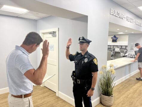 SANDWICH – From Sandwich Police: Friday, Officer Joseph Morrison was sworn in as a Police Officer for the Sandwich Police Department by Town Clerk Taylor White. Officer Morrison begins his Field Training program today. The Field Training program will prepare him to serve as a Patrol Officer in the Town of Sandwich.
