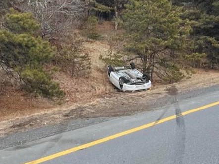 No serious injuries reported after vehicle rolls on its roof in median on Route 6 in Yarmouth
