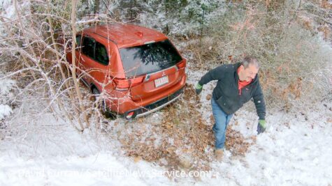 FALMOUTH – An SUV slid off an exit ramp into some bushes. Ot happened Sunday afternoon on the ramp from Route 28 to West Falmouth Highway (Route 28A). No injuries were reported.