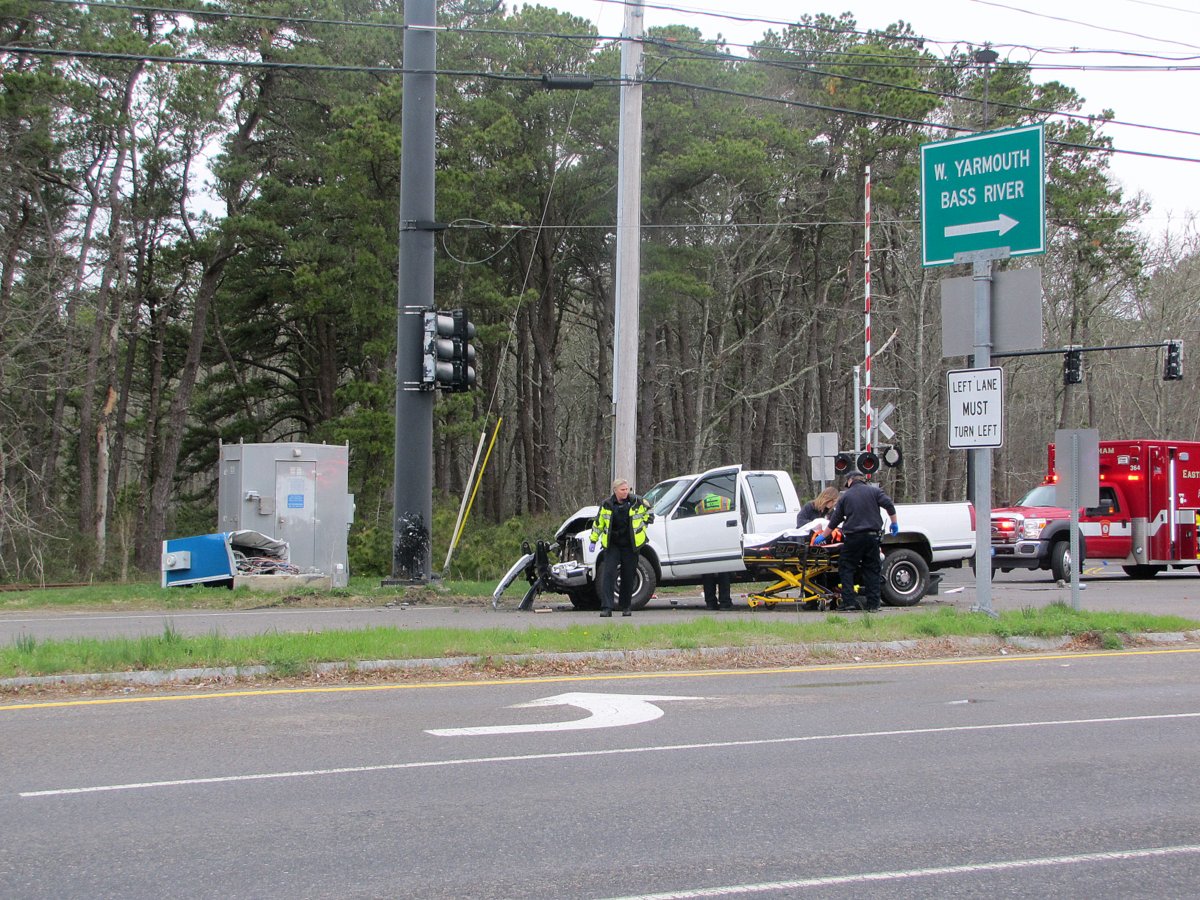 WEST YARMOUTH – One person was seriously injured in a crash in West Yarmouth shortly before 1 PM. The crash happened at the intersection of Willow Street and Higgins Crowell Road. A Chevy Silverado struck the traffic light control box. An Eastham ambulance happened on the scene and rendered care until Yarmouth officials could arrive. The Eastham ambulance took the victim to Cape Cod Hospital with injuries that were believed to be serious but not life-threatening. The crash caused the traffic lights to malfunction which was slowing traffic in the area. Yarmouth Police are investigating the crash.