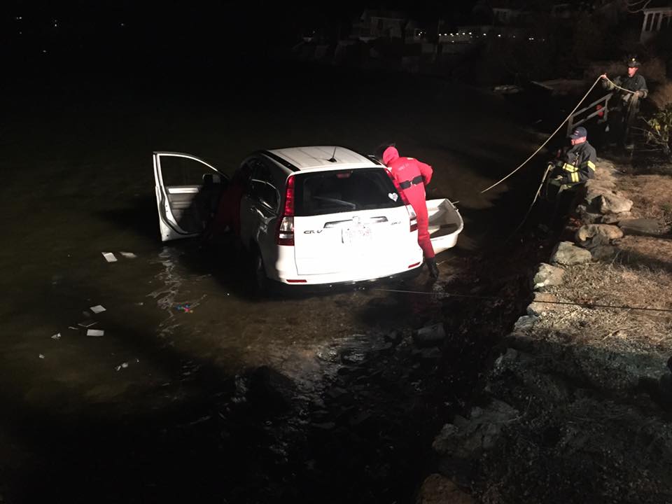 Wareham Police responded to the area of Locust St. and Upland Rd. in Onset around 10:30 p.m. for the report of a vehicle submerged approximately 50-75 feet.