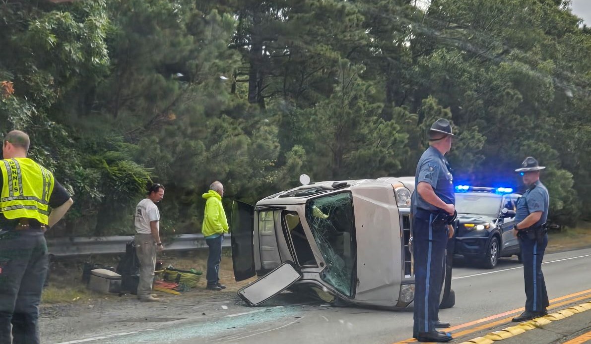 DENNIS – A few minutes later a vehicle overturned on Route 6 eastbound near Route 134. Two people were treated and released.