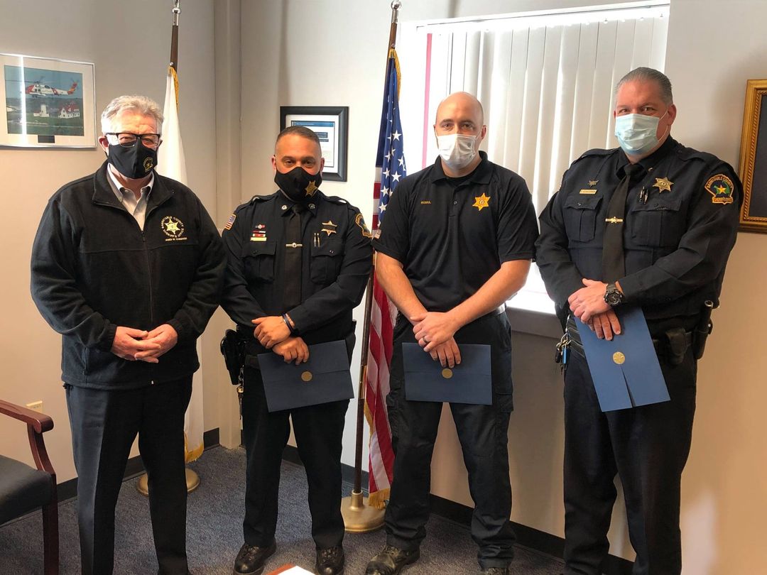 BOURNE – Sheriff Cummings presented Life Saving Awards at the Barnstable County Correctional Facility Wednesday to Deputy Sheriff Matthew Rumul for an incident in October, and Deputy Sheriffs John Curry and Daryl Schuchman for an incident in December. These deputies prevented two separate tragic events from happening in our community and we thank them for their quick actions and service.