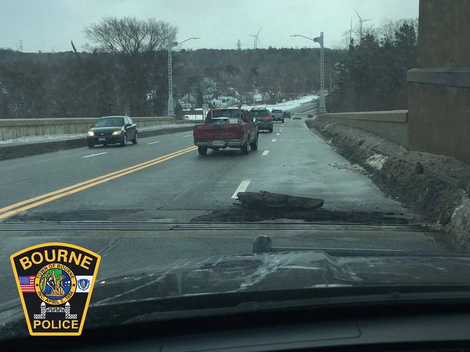 12:15 p.m. update: A problem with rebar sticking out of the concrete on the Sagamore Bridge has forced the bridge down to one lane in each direction. Expect heavy delays in the area and use the Bourne Bridge if possible. The US Army Corps of Engineers are on location attempting to repair the issue. It is currently unknown how long the lanes will be restricted.