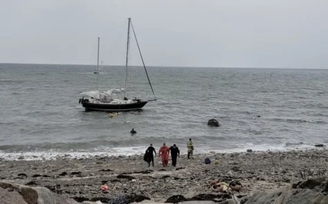 At approximately 7:30 AM Wednesday, the Plymouth Fire Department was informed by the Plymouth Emergency Communications Center following a 911 call reporting a sailboat that appeared to be in distress and in danger of running aground in the area of 92 Center Hill Road.