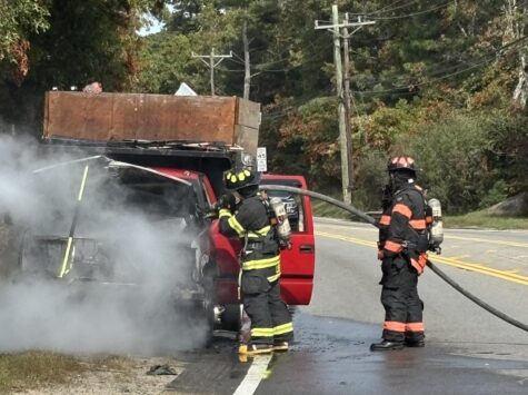 BOURNE – A truck fire temporarily shut down Sandwich Road near the Upper Cape Cod Regional Technical High School about 1:30 PM Tuesday. Bourne Police reported that there was no vehicle crash involved and no students were involved.