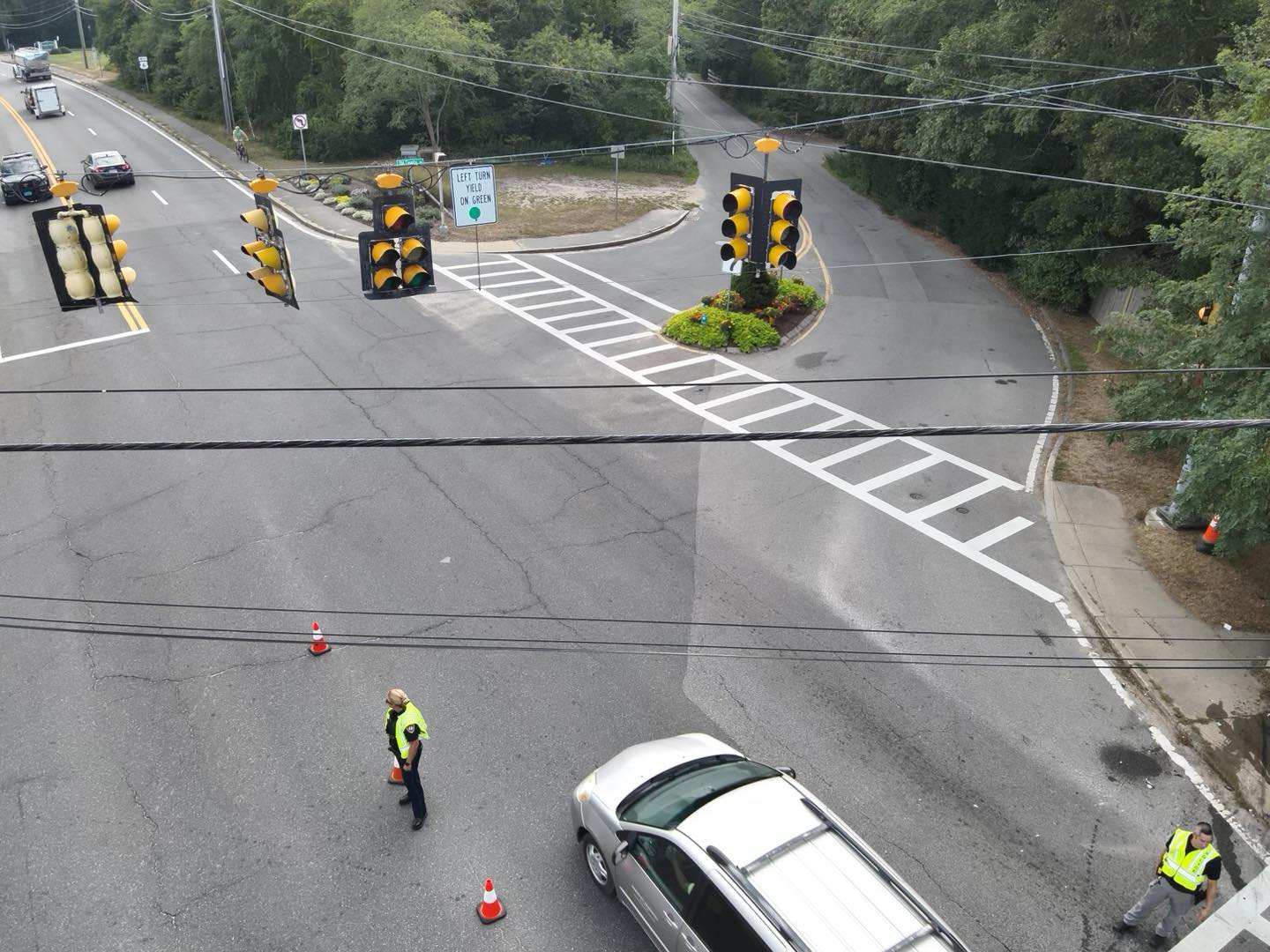 Update: Eastham Police report that On Wednesday, August 28, 2024, at approximately 2:40 PM, the Eastham Police and Fire Departments responded to the area of Route 6 and Brackett Road for a report of a motor vehicle crash. On arrival, first responders located a two-vehicle crash that also involved significant damage to the electrical box that controls the overhead traffic lights. Due to this damage, the traffic lights were completely off and not functional. The Eastham Fire Department transported two patients to Cape Cod Hospital with what appeared to be non-life-threatening injuries. Eastham Police Officers, including two summer community service officers, set up a traffic plan to control the intersection until the traffic light could be repaired.