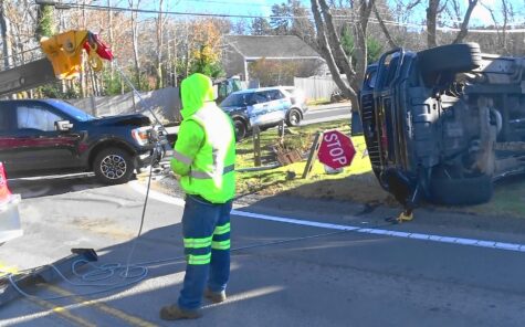 HARWICH – A two-vehicle crash in Harwich left one car on its side. The collision happened about 12:30 PM Saturday on Pleasant Bay Road at Route 39. A Ford pickup and a Mercedes SUV collided with the Mercedes rolling over. All of the victims were treated and released at the scene. Harwich Police are investigating the cause of the crash.