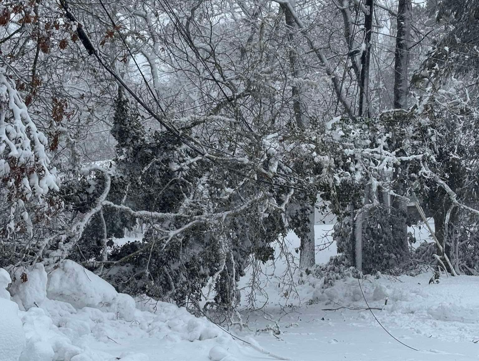 The public is reminded to stay off the roads unless absolutely necessary and to use caution around downed trees and power lines.