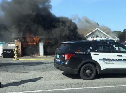 From Yarmouth Fire: At 5:37 PM, the Yarmouth Fire Department received 911 call from an employee at Transmission Specialists at 188 Route 28 report a car fire. Additional calls and information from Yarmouth Police on scene reported the fire had extended into multiple vehicles and involved the structure. The first engine on scene transmitted a working fire assignment, with smoke and fire showing throughout the building. Firefighters aggressively attacked the fire and it was brought under control. Removing the vehicles involved in the fire proved to be difficult, but successful thanks to the assistance of Mid Cape Collision and their expertise. There were no injuries to civilians or first responders. The cause of the fire is under investigation.