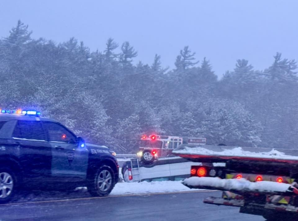 BOURNE – A vehicle rolled on its roof in the median of Route 25 eastbound before the Bourne Bridge just after 7 AM Saturday. All of the occupants were able to self-extricate from the vehicle. They were evaluated at the scene. Mass State Police are investigating if icy roads played a role in the crash.