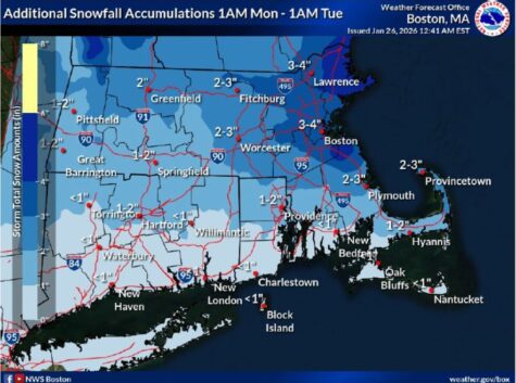 Eversource reported very few power outages, due to the lack of sustained strong winds during the storm. Coastal flooding was also not a concern.
