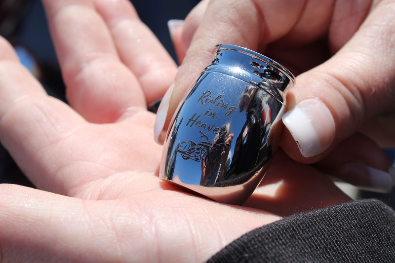 Each year, at the start of motorcycle season, bikers come to be blessed and help raise money for the Blue Knights charitable endeavors including scholarships and the Sgt. Sean M Gannon Memorial Fund. Once motorcycles are in place, a loud horn from the Buckler’s Towing wrecker signals the start of the event. The wrecker carries the Deacon on a platform and using a brush, he sprinkles (or flings) blessed holy water on each motorcycle, biker, dog, stroller even an electric scooter! The energy was infectious as friends reconnected after years apart due to Covid restrictions.