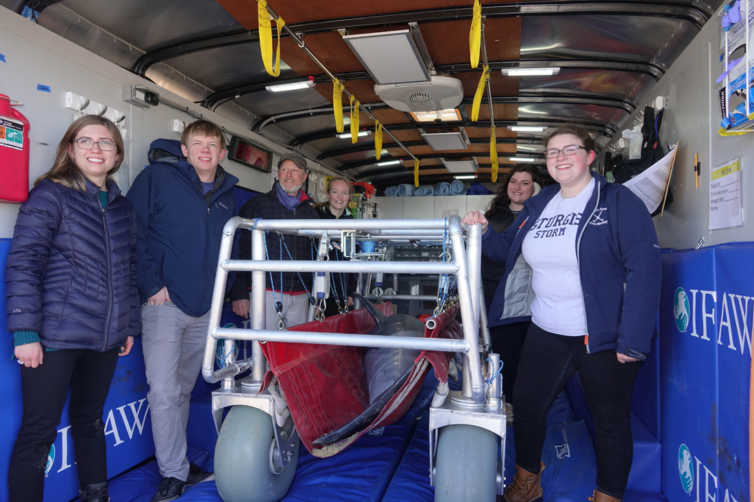 Kudos to students at Sturgis Charter Public School who have developed an innovative new carrier to rescue stranded Dolphins and other marine mammals.  The carrier was recently demonstrated at Grays Beach, YarmouthPort. The students, under the guidance of their Science teacher Dr. Pete Sampou, were funded with a Lemelson-MIT grant, worked in partnership with  International Fund for Animal Welfare (IFAW), and engineers from Woods Hole Oceanographic Institution. One of the main features of the carrier is its “pouch-like” design for holding mammals, which is better for their internal organs – a more solid flat surface is being used now.  It’s possible that the Sturgis Dolphin Rescue Carrier will be adopted internationally by marine mammal scientists and rescue crews!