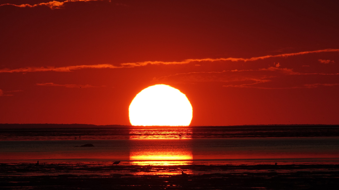 This sunset, viewed from the huge tidal flats at Linnell Landing, Brewster reminds me of an Endless Summer…the sun dripping through a band of clouds illuminating the sky.