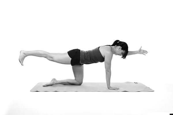 What it works: This dynamic exercise strengthens all the muscles of the back, as well as the glutes and the hamstrings. It also improves balance and core stability. This a great over all conditioning exercise and super for people with chronic lower back pain that often has to do with weakness and poor core stability.