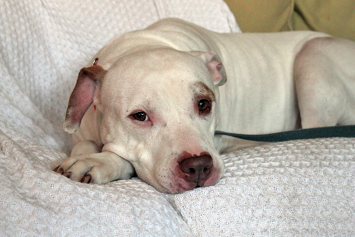 Meet Edison! This smart boy is house trained and also knows all his basic commands. He’s a big boy who walks pretty politely on leash. Edison is a bit of a nervous nelly with new things & people – go slow with him, and he’ll become your best friend. He is a big fan of cuddling on the couch. In his previous home, Eddy lived with adults, other dogs, and cats. Since he never had exposure to kids, he’s looking to move into an adult setting again. While Edison gets along with other dogs, he is past the stage of wanting to play with them – another couch potato would be more his speed.