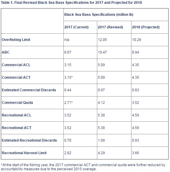 WASHINGTON, D.C. – The catch limits for black sea bass have been revised for the remainder of 2017.