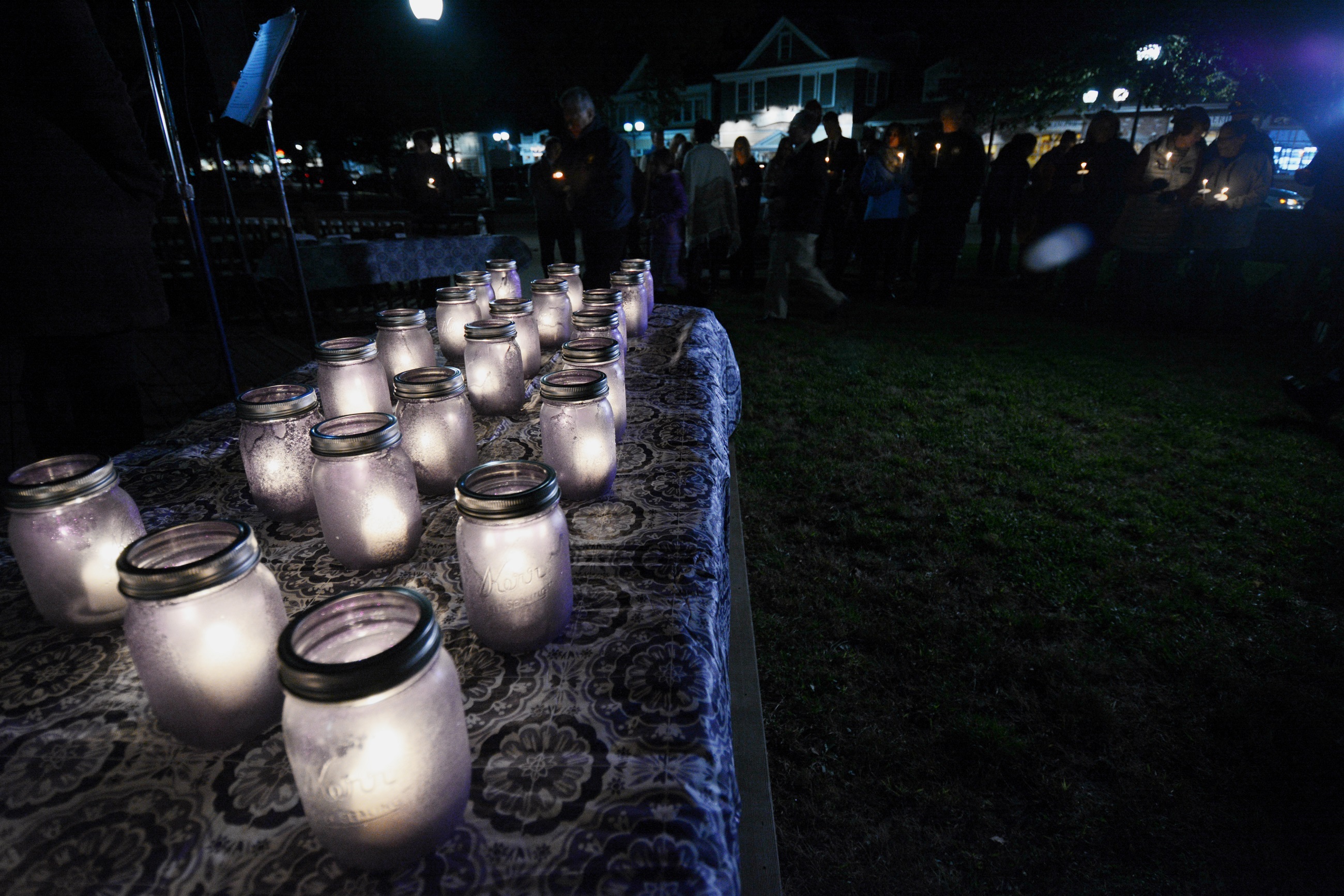 FALMOUTH – Candles were lit and shirts, illuminated in light Friday night at Peg Noonan Park to remember, honor and support the women and men lost and affected by domestic violence.
