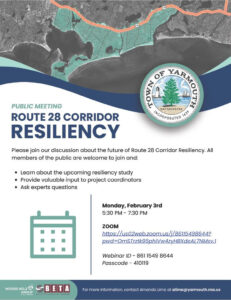 YARMOUTH – Yarmouth is inviting residents to attend a public meeting on Monday, February 3, 2025, to discuss the upcoming Route 28 Corridor Resilience Study.