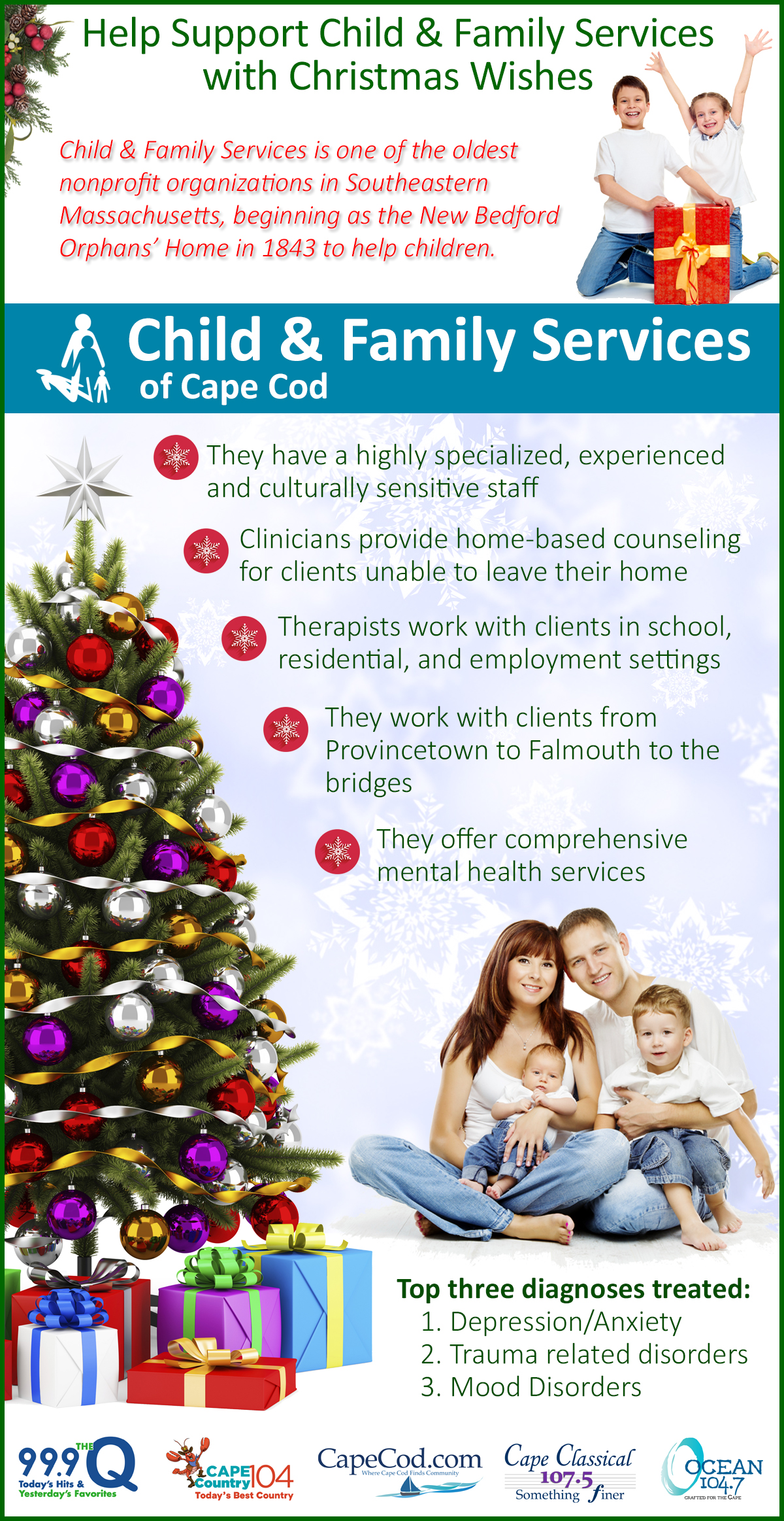 The Christmas Wishes program is based in the belief that everyone deserves to have a Merry Christmas. There are many Cape Cod families that are struggling to make ends meet and won’t be able to provide a Christmas for their families this season. You can help them out! Through your generosity, we are able to provide a reminder to families that the Spirit of Christmas is alive and well! Thank you for your continued support.