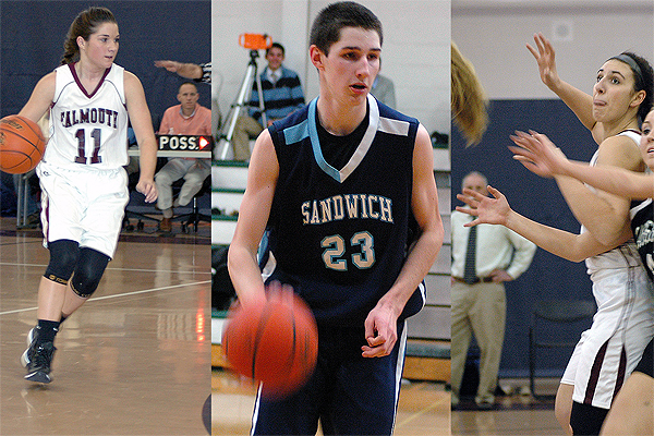 As Cape Cod high schools teams begin vying for postseason spots, this past week has seen some tremendous efforts and performances at every turn, so many it’s almost impossible to select just one Capecod.com Athlete of the Week. Thus, this week we had little choice but to select three local student-athletes: Taylor Miller, Andrew Galanek and Jenni DiCecco. Falmouth’s DiCecco, only a sophomore, has proven one of the region’s top point guards this winter, averaging 13.2 points per game. Miller, perhaps the top center in Southeastern Massachusetts, is averaging 15.8 points per game and 12.7 rebounds. In a stunning come-from-behind win versus Marshfield that maintained the Clipper girls’ unbeaten record at 13-0, Miller poured in 18 points and took down 11 rebounds while DiCecco scored 15 points had seven rebounds, seven assists and four steals. Miller also blocked eight shots. Galanek, who has loomed largely in the shadows behind Sandwich upperclassmen like Joey Downes and Hank O’Brien, scored a game-high 28 points last weekend in an incredible, 99-63 rout over Bishop Stang and that on the heels of a 19-point, six rebound performance against D-Y. Galanek has proven an invaluable cog in the Blue Knights’ Basketball Machine. For their efforts, Miller, DiCecco and Galanek are this week’s Capecod.com Athletes of the Week.