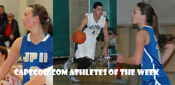 AOW-1-5-15Heading into this week as one of just a handful of Cape team’s in all sports that are still undefeated, Mike Tierney’s St. John Paul II girls basketball team has proven it can run and gun with the best of them. There are two very tall reasons for that early success: Kaia and Haley Whiteley, this week’s capecod.com Athletes of the Week. Kaia, a senior forward, recorded a game-changing double-double versus the host Dennis-Yarmouth Dolphins during the Stripes Tournament late last week, pouring in a game-high 16 points to go along with 10 rebounds, while her twin-sister and St. John Paul II Lions senior captain Haley Whiteley had 10 points to go along with 7 rebounds in the low-scoring, 43-29 win. Both girls have been perennial all-stars on the Lions’ parquet, but this year it may seem more like their speed in the transition game and ability to own the paint is reaping dividends for the Blue & Gold. Tack on that Kaia is equally an outside threat beyond the arc and you have the makings of a possible championship bid come March. This week’s honorable mention Capecod.com Athlete of the Week: Dennis-Yarmouth’s boys basketball senior captain LK Metz who poured in 25 points including 15-20 from the free-throw line in a major upset over Barnstable.