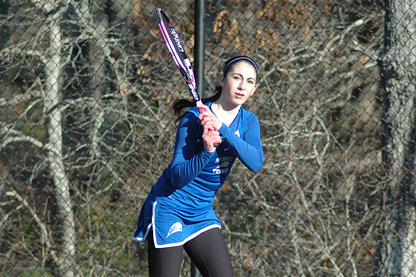 In first doubles action, Charlotte Potter and Josie Iadicicco defeated Baila Mir and Emma Luke, 6-0, 6-2, and second doubles team Avery Hazell and Madison McBride took down Alyssa Berube and Rachel Santos 6-4, 6-2.