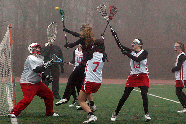 Down 8-7 with less than four minutes to go in the second half, Glover attacked the Falmouth net just as it seemed the Clippers might prevail and from that point forward the Red Raiders would not take “no” for an answer. Claire Deely tacked on an insurance goal that made it 10-8 just 0:39 seconds after Rogorzenski’s go-ahead marker (assisted by Shannon Roycroft).