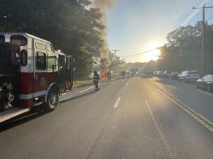 Firefighters extinguish vehicle fire on Cranberry Highway in Bourne